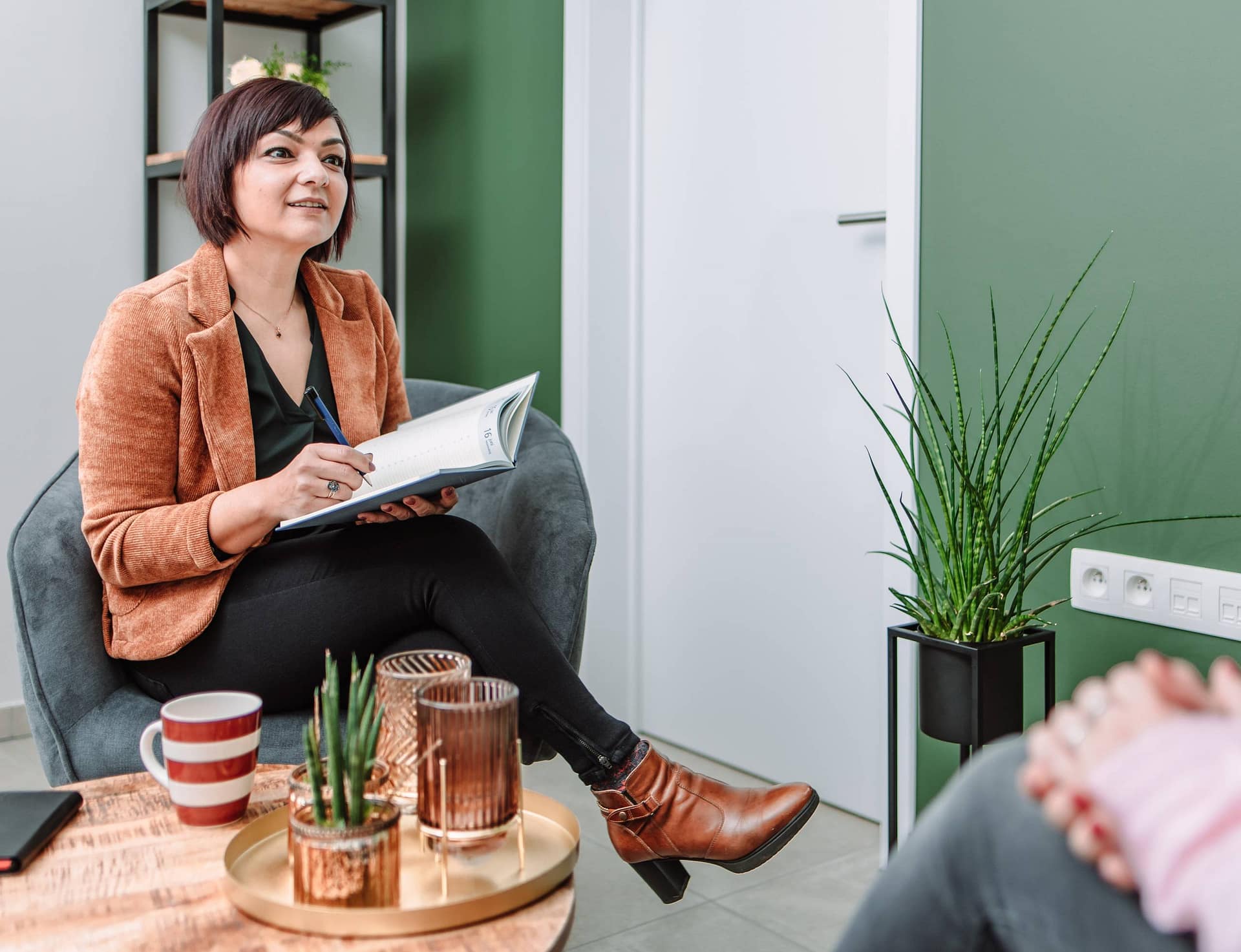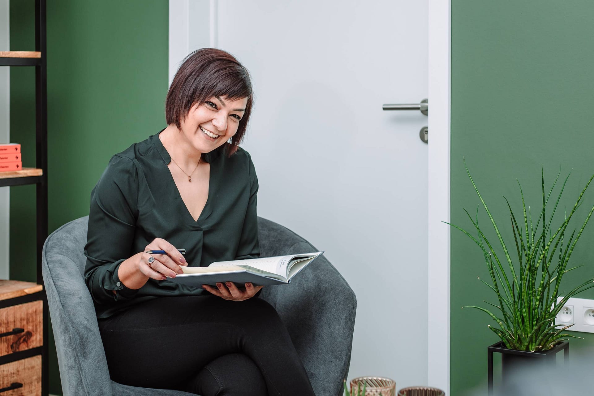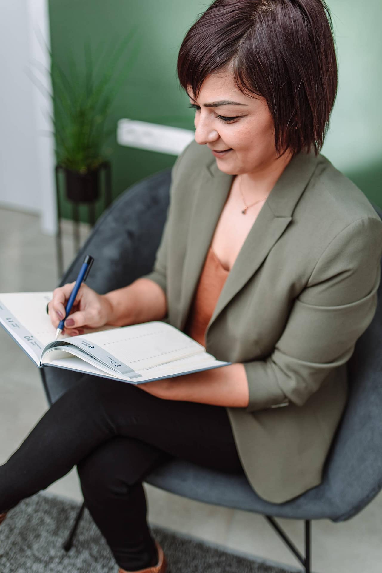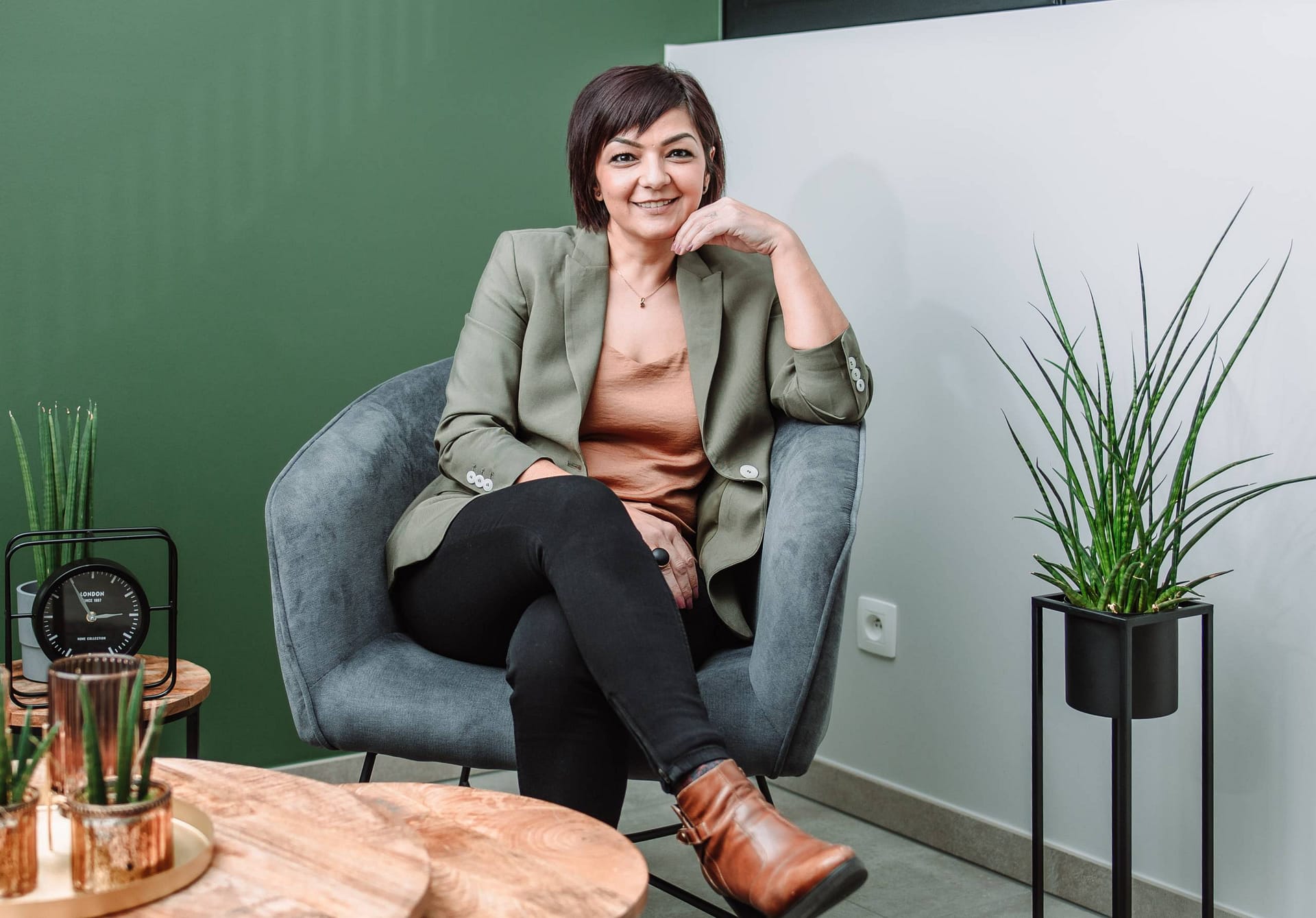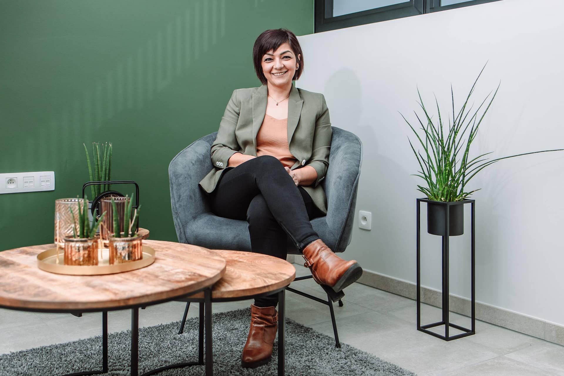 Selma is loopbaanbegeleider en heeft haar eigen zaak “Essensy”. Ze wilde graag foto’s van zichzelf in haar natuurlijk habitat, m.a.w. in haar kantoor. Deze foto’s gebruikt Selma op haar website, social media en in haar algemene communicatie.