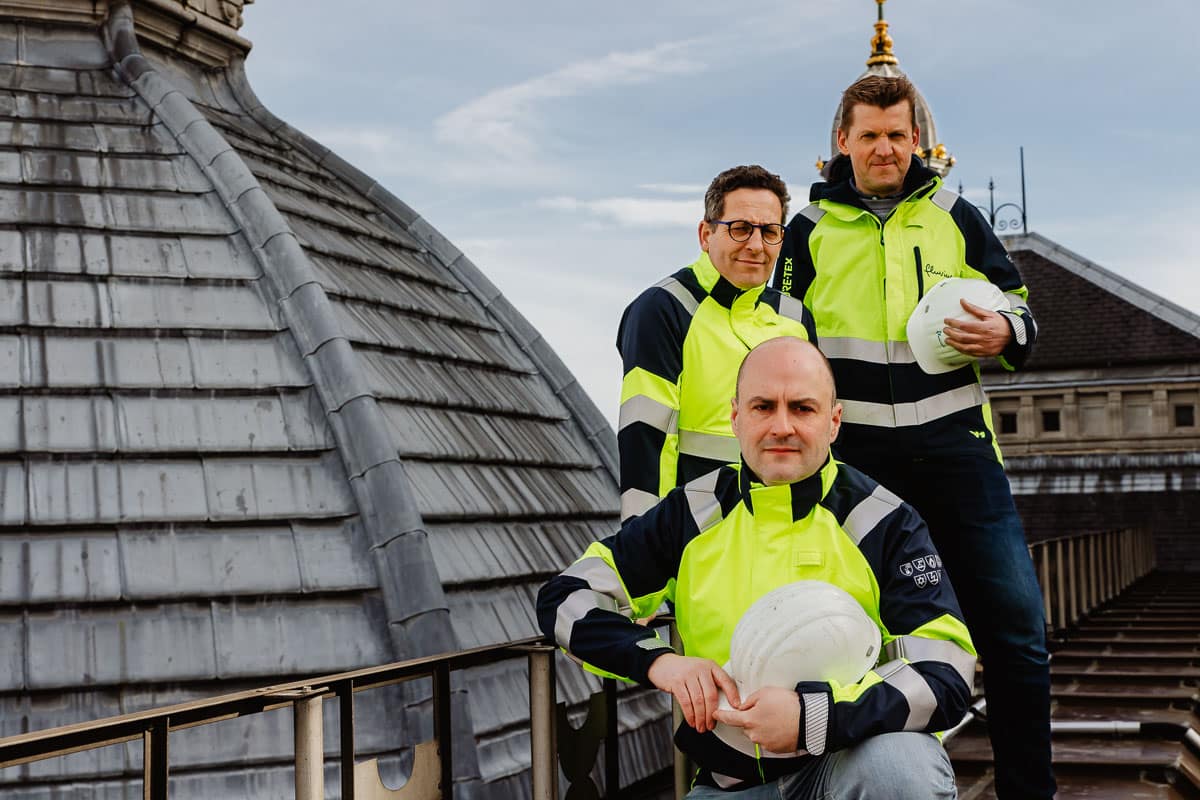 Fotoreportage van enkele teamleaders die de plaatsing van de nieuwe verlichting aan het centraal station van Antwerpen coördineren.